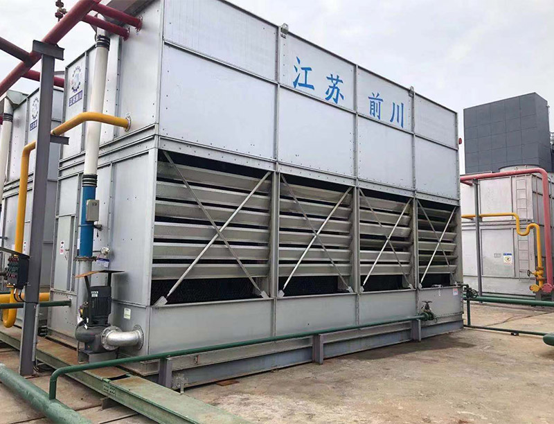 閉式冷卻塔是用水作為循環(huán)冷卻劑,從一系統(tǒng)中吸收熱量排放至大氣中,以降低水溫的裝置;其冷是利用水與空氣流動接觸后進行冷熱交換產生蒸汽,蒸汽揮發(fā)帶走熱量達到蒸發(fā)散熱、